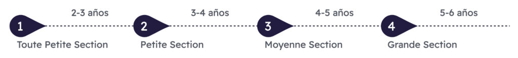 Organisée en quatre niveaux — Toute Petite Section (TPS), Petite Section (PS), Moyenne Section (MS) et Grande Section (GS) — elle a pour mission première de donner aux enfants le goût d’apprendre, de nourrir leur curiosité et de favoriser la construction progressive de leur personnalité.