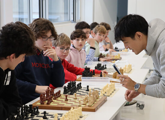 25 élèves, du CM2 à la Terminale, ont pu échanger avec lui autour de son parcours scolaire, sportif et professionnel, ainsi que de ses différentes stratégies de jeu. Les joueurs de l’établissement ont même relevé le défi de l’affronter lors d’une session de jeu simultanée.
