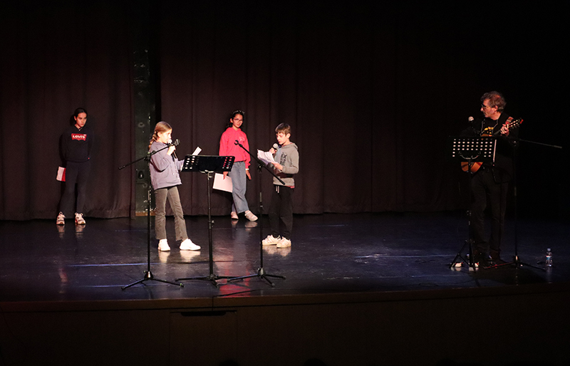 Du 12 janvier au 6 février, Gilles Marchand a mené des ateliers d’écriture avec une dizaine de classes de la 6ème à la Terminale qui ont débouché sur une restitution collective au théâtre, faite de textes et de musique.